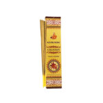 Incenso natural ayurvédico Masala, com uma mistura única de ervas, flores, mel, resinas e óleos. Oferece aromas refrescantes e suaves, que elevam o seu espírito além dos reinos dos seus sonhos. Estes paus de incenso ayurvédico tocam nos seus sentidos e ficarão no ar por muito tempo, criando assim uma atmosfera pura que acaricia o seu corpo, mente e alma.