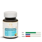 Balsamodendron mukul (guggul) 694/1388 mg, Bauhinia variegata 334/668 mg. Hydroxypropyl-methylcellulose vegetarian capsule. Clarified butter (from cow’s milk) 111/223 mg. Emblica officinalis (amalaki) 66/133 mg, Terminalia belerica (bibhitaki) 66/133 mg, Terminalia chebula (haritaki) 66/133 mg, Piper longum (pippali) 33/66 mg, Crataeva nurvala 33/66 mg, Zingiber officinale (ginger) 33/66 mg, Piper nigrum (black pepper) 33/66 mg, Elettaria cardamomum (cardamom)